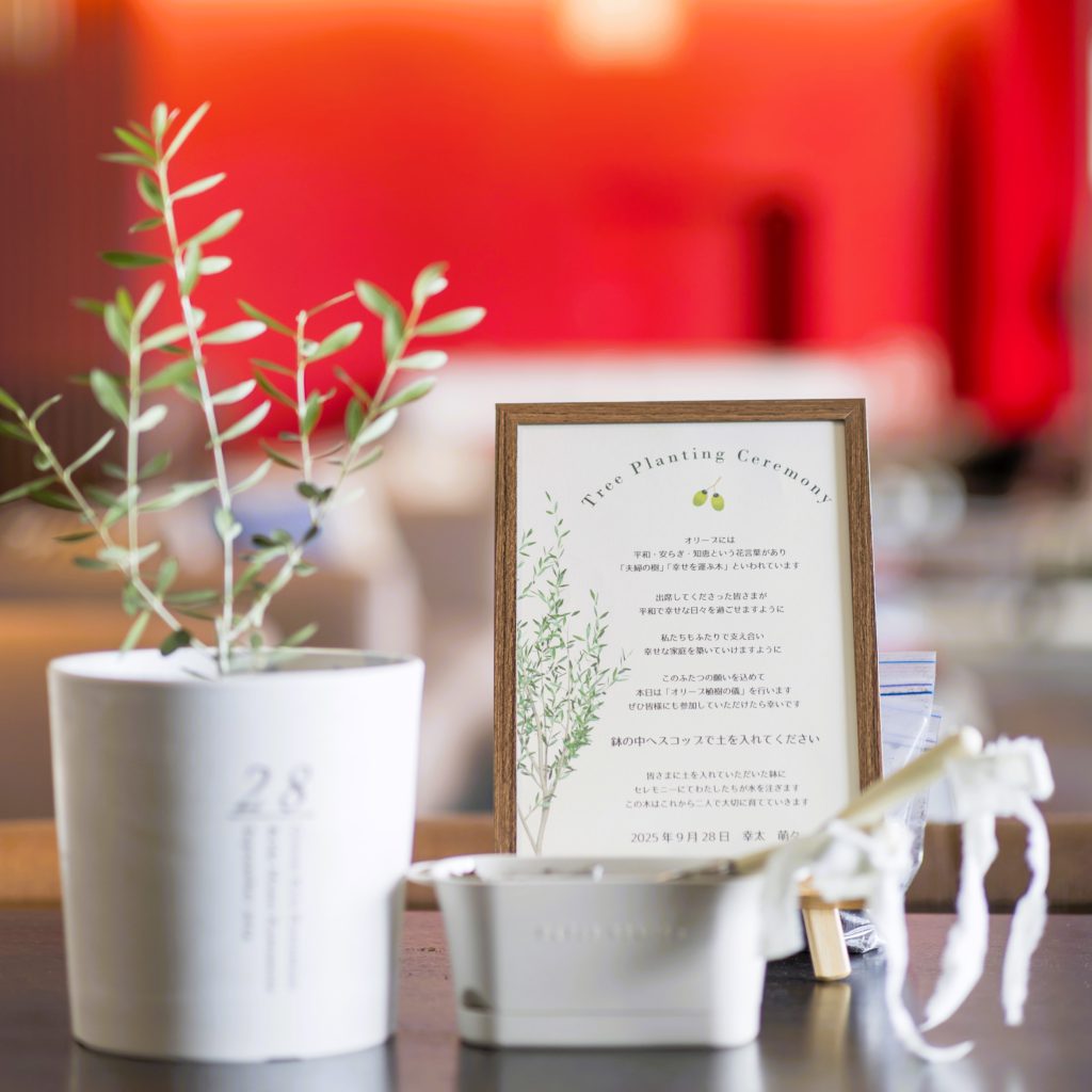 ・オリーブの木を使用したセレモニー&結婚証明書や、アフターセレモニーでのお菓子まき、デザート